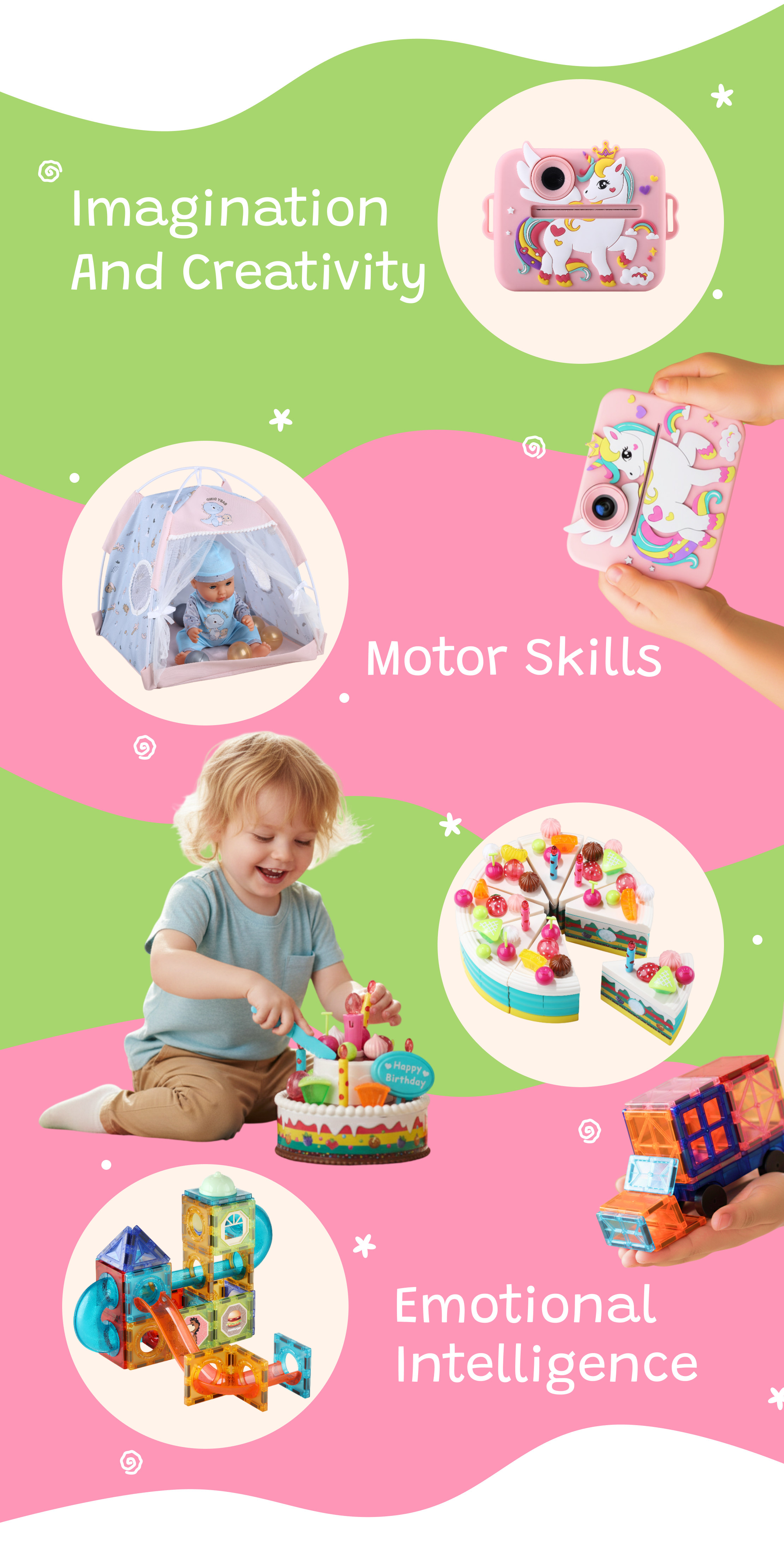 Set of 2 Birthday Cake Toys | Light & Music Interactive Play Food