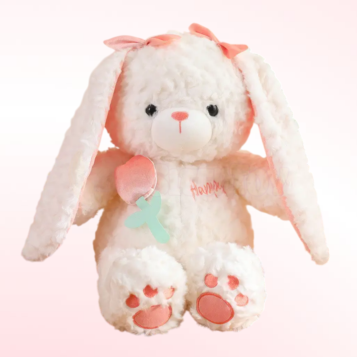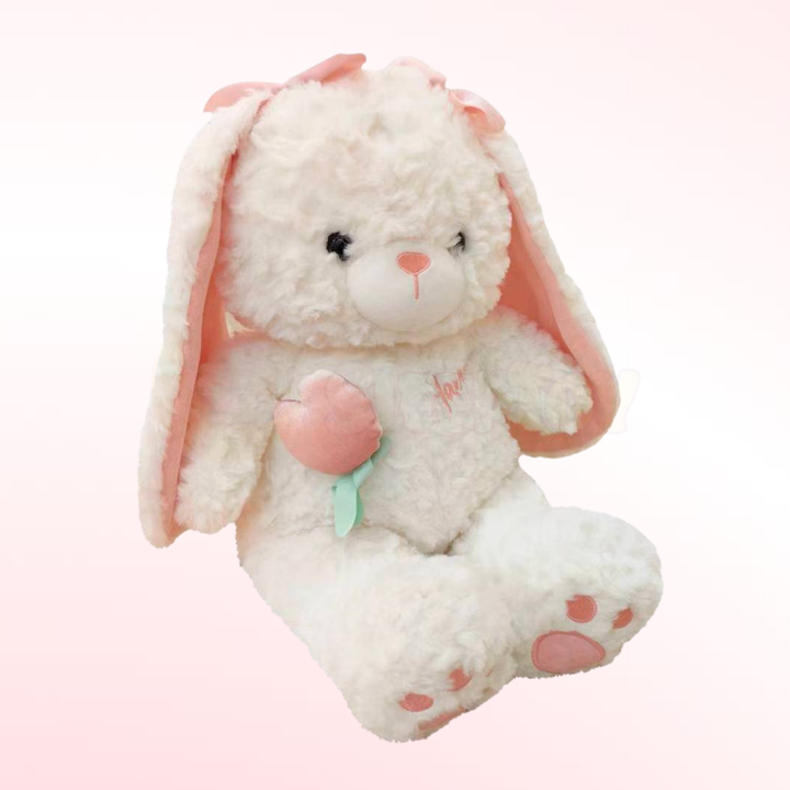 Meet this adorable plush bunny, a fluffy friend made to bring warmth, comfort, and endless smiles. With gentle pink ears, tender eyes, and a little heart on its chest, it seems to whisper, “I’m always here for you.”