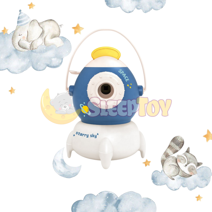 Open the door to a magical universe with our cute rocket-shaped projector! The Starry Sky children's space projector will transport your child to a magical universe right from their room. With projections of the starry sky, planets, and distant galaxies, it creates a fairy-tale atmosphere and tranquility, helping your child fall asleep or immerse themselves in a world of fantasy. Its lightweight design and convenient handle make it easy to carry the device from room to room, giving children their own universe anywhere. The projector emits a soft night light that makes the room cozy and safe at night. The rocket design captures the imagination and turns an ordinary evening into a space journey. It is the perfect accessory for a child's room, giving them the gift of sleeping under the stars every day. Important note. Batteries are not included in the set. The toy requires 3 AA batteries. We do not include them with the set to ensure proper storage and transportation of the toys. You can use any standard batteries those your family trusts. Designed for children aged 3+.
